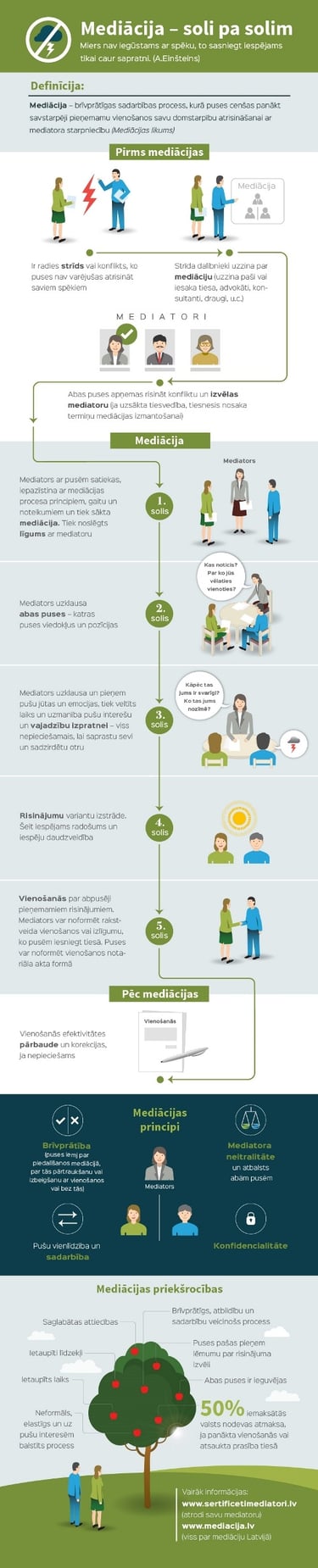 Tieslietu ministrijas un Valsts kancelejas infografika par mediāciju